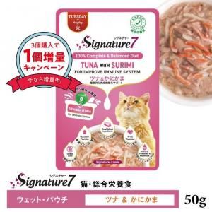 『シグネチャー7(Signature7)/ツナ&かにかま』は、免疫をケアする猫用総合栄養食です。