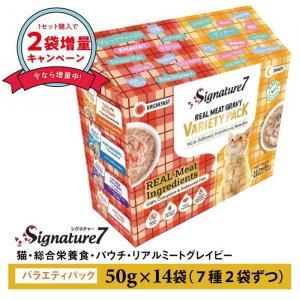 オールステージ・猫用総合栄養食『シグネチャー7』のパウチシリーズです。素材のエキスが溶け込んだスープが多めのグレービータイプ。