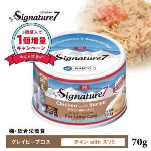 『シグネチャー7(Signature7)/・グレイビーブロス チキンwithスリミ』は肝臓をケアする猫用総合栄養食です。