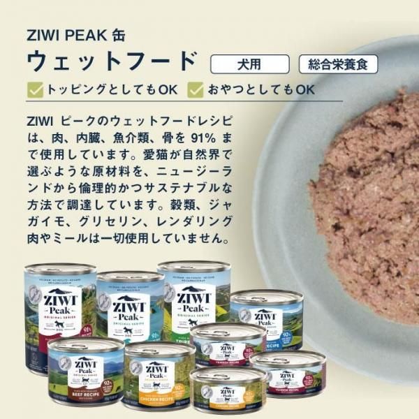 「バランスの取れたZIWIピークのウェットフードは、子犬からシニア犬まで全ライフステージに対応した総合栄養食です。